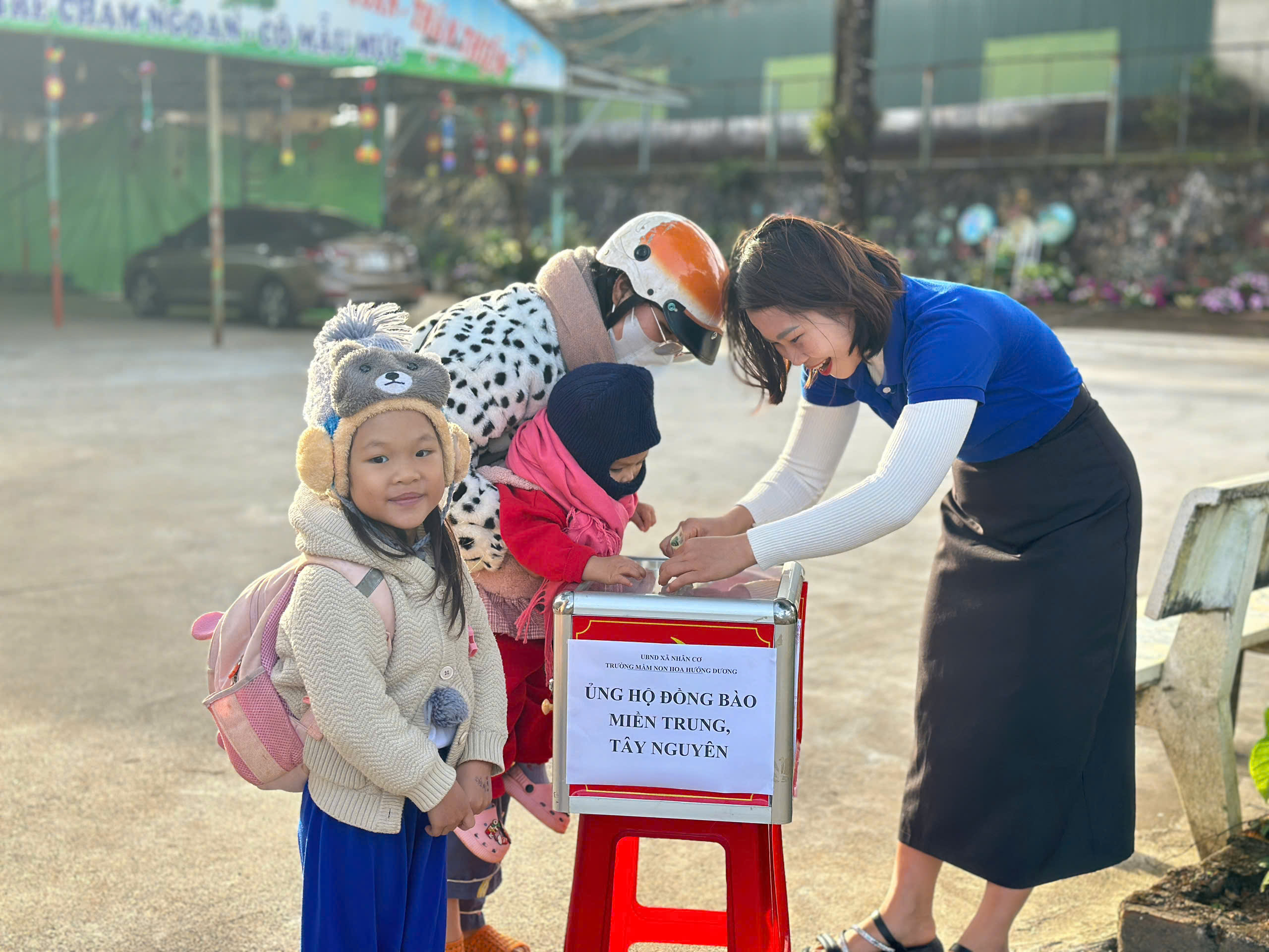 Hưởng ứng lời kêu gọi hỗ trợ ủng hộ đồng bào bị ảnh hưởng bão lũ tại các tỉnh miền Trung và Tây Nguyên, chi đoàn Trường MN Hoa Hướng Dương đã phát động phong trào quyên góp, ủng hộ với tổng số tiền mặt từ CBGVNV và phụ huynh học sinh trong 2 đợt là: 25735000 Với số tiền huy động đến thời điểm hiện tại tuy chưa lớn nhưng tập thể Cô trò và quý phụ huynh cũng đã góp phần sưởi ấm những tấm lòng đối với bà con nhân dân vùng thiệt hại do thiên tai lũ lụt. Chúng tôi vô cùng xúc động và trân trọng khi nhận được sự quan tâm, hưởng ứng nhiệt tình của quý phụ huynh, học sinh đã “Nhường cơm, sẻ áo” trong lúc khó khăn này.